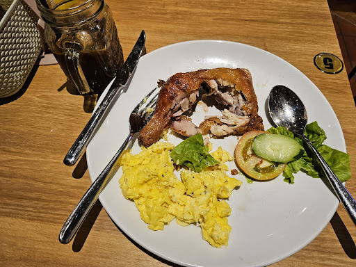 My wife ordered Char Koey Teow with teh tarik, so I requested for Chicken Chop with low carbo, which meant they didnt serve it with any rice or fries, and the Kopi Ipoh Ais Kaw...whatever that is! And much to my disappointment, it was nothing spectacular. The coffee was a bit bitter, but the ice soften the blow a little bit. However, I love my chicken chop, which was served with scrambled egg and some veggies.