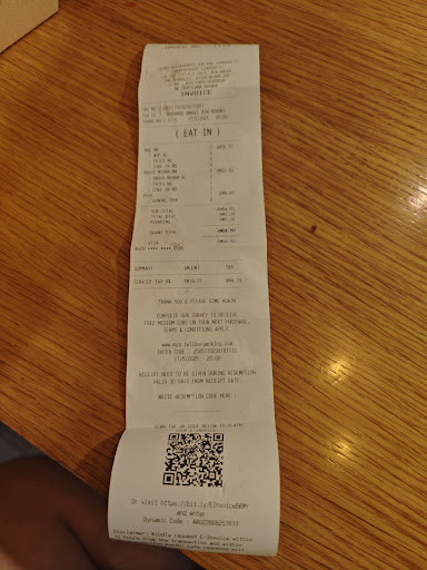 I visited this outlet to order take away dinner on the night of 20th Feb. I didn't realise I dropped my wallet in the store. There were 3 staff working that night, one lady and 2 gentleman. When I realised I had dropped my wallet about 10 mins after, and went back, the malay lady at the front counter immediately returned my walle telling me her colleague found it on the floor at the table where i sat waiting for my order and asked me to check to ensure all content was intact. All the cash a few hundred worth was still there together with all my cards. I was so thankful and amazed at the level of professionalism and honesty by this team of 3 amazing individuals. Well done to the entire team 👏 You guys truly amaze me and are a fine example for today's generation...