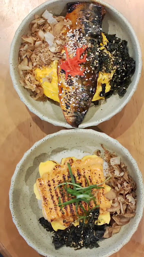 Saba - first bite (rice with egg and furikake) was great match of flavours. But once mixed with the omu egg to have a bite, the flavours felt unmatched. Omu egg was not seasoned (bland) and the amount of egg on (with the egg partly left runny), the more you ate the more you feel "geli" and lost of appetite. The saba fish was well cooked and seasoned as its own. But when you have a whole bite together with the egg, rice, furikake and bonito flakes, the flavours doesn't match. Till the end of my dish, I felt unappetising mainly due to the runny omu egg still lingering in my stomach which made me uneasy.