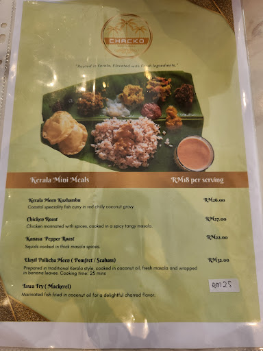 Read moreWent for breakfast this morning with my dad to Chacko, had no idea they had just opened in my neighbourhood, firstly when we entered I loved the ambience . Staff were also friendly and accommodating. The owner of the restaurant was also very kind and chatty. My dad and I enjoyed the Thattu Dosa very much was super soft and fluffy and the sambar and chutney that came with it was delicious and felt very home made . It’s a must try !!! We also had the Kerala Parotta with Kadala curry and the parotta was very delicious , flaky on the outside and so soft inside and not too oily , I’m not a big fan of chickpeas but order it to get in some protein. The last thing we tried was the puttu which was also very fine and tasted nice. I had an iced bru coffee which wasn’t on the menu but they made it and I enjoyed it very much . My dad had a hot bru coffee and enjoyed it as much as I did . We were vegetarian today and we both enjoyed our breakfast . I look forward to coming back and try their non vegetarian menu . It’s nice to have a place like this around the corner from...