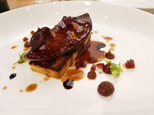 Read moreDelicious top notch restaurant with impeccable service! Wait staff were friendly and professional. We were served a cold watermelon appetiser along with what seemed like flat bread topped with bacon and butter. Watermelon was refreshing while the flat bread was fragrant with the butter and bacon smells. Then came our onion soup, cream (cheese i think) that came with it made the soup flavourful, light, and that oomph to compliment the soup. Pork ribs appetisers that my sister ordered were delish, with the plum sauce setting the right amount of sour to the porky fat goodness. I shared a bacon angel hair and pork shoulder and both were absolutely divine! Pork shoulder was tender and burnt just right, with soft and smooth mash potatoes. The bacon was a thick slab of pork belly burnt to perfection, so you get that fragrant smoky pork scents along with the tomato based angel hair which were stewed long enough to give you a great sauce that’s not too watery and not too thick which is usually the case and makes me scared to eat tomato based spaghetti outside. Sorbets; passionfruit, lychee and raspberry, all good! And their signature Champignons dessert (photo not included) was the most well thought of dessert! Unique when it came, where the wait staff melted the white chocolate top with raspberry sauce, blended well with the chocolatey goodness, with little bits of chocolate pops to enhance all the flavours...