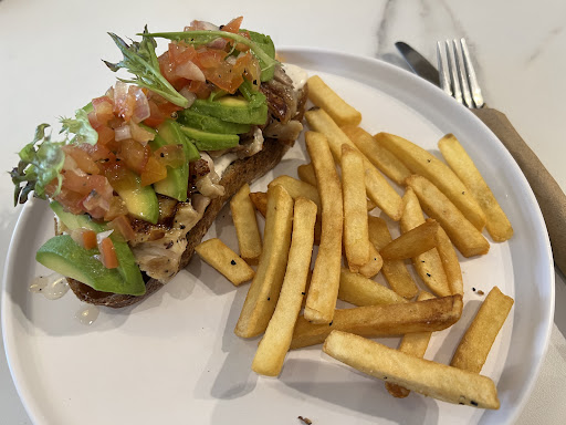 First, the positives: The chicken avocado tartine is awesome. The garlic aioli dressing is subtle yet flavorful, the grilled chicken is well seasoned and delicious, and while the crust of the sourdough bread slice that it all comes stacked on can be a bit hard and tough to chew, the slices of avocado kind of balances out the texture of the bread and is a lovely complement. It was a pretty generous portion before but like everything else in town, it has fallen victim to shrinkflation â itâs not exactly a meager portion but now itâs more a moderate size. I donât mind the slight increase in price; I much prefer that cafes keep the quality of their offerings and raise prices a little instead of forcing the prices to stay static but then compromise on the quality of the food. I also love that it comes with fries, which provides a welcome boost of salty deliciousness.