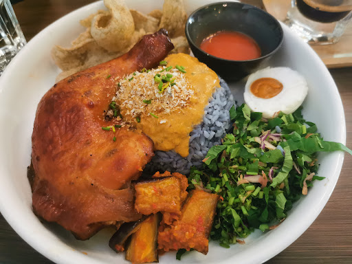 We ordered the nasi kerabu and mille feuille. The mille feuille set was quite unique. Tasted crispy and went well with the poached eggs. However, the nasi kerabu, costing a hefty RM35, was a huge disappointment for me. While the chicken itself was quite crispy and flavourful together with the tasty ayam percik sauce, I wouldn't say it was spectacularly tasty.