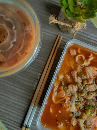 I will usually buy their Sichuan pan mee soup ( in the picture) and their 3 layer emerald milk tea. It was quite nice, no complains.
