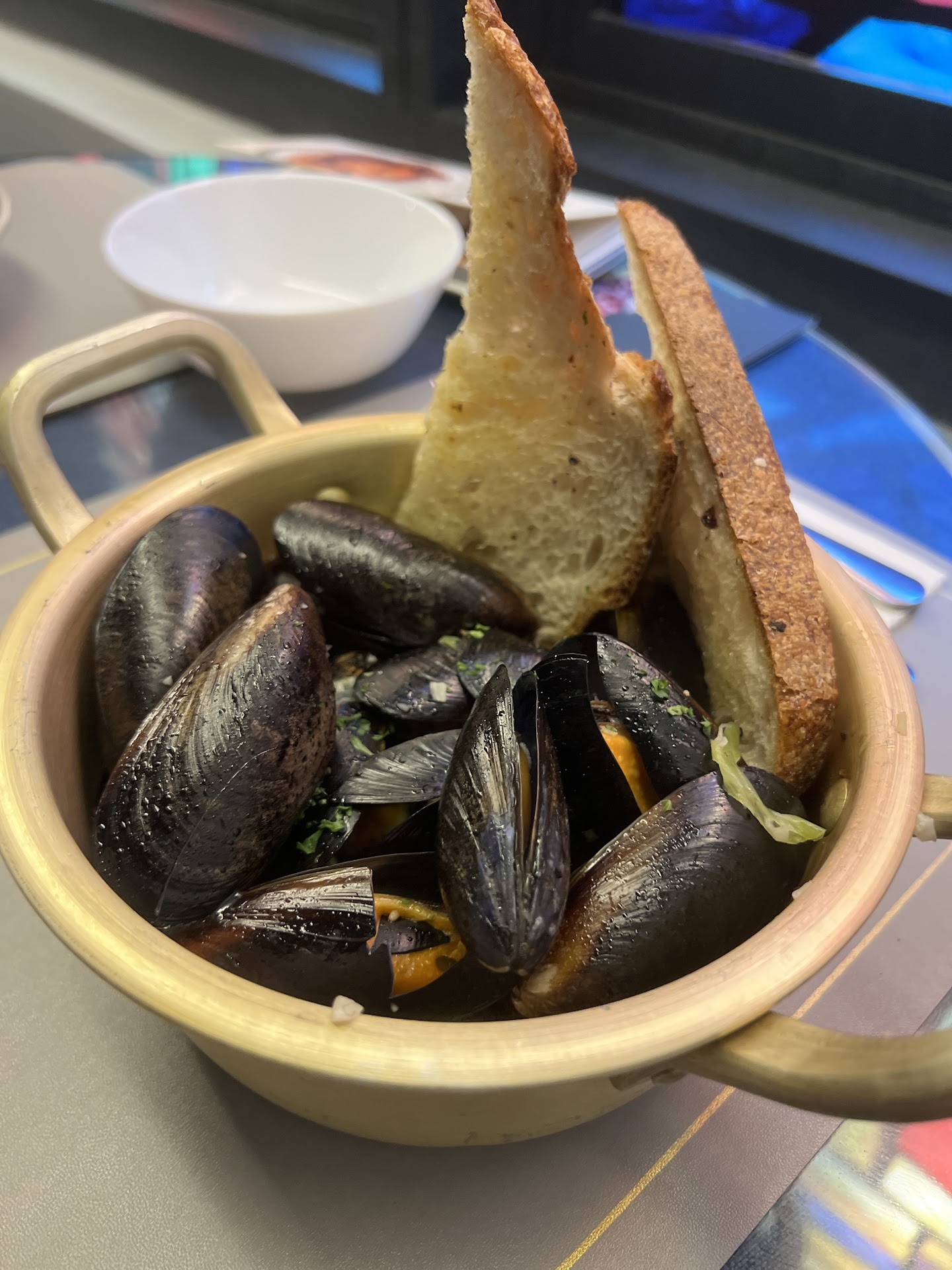 Mussels in White Wine Sauce Similar to the risotto, this dish was also not served hot. The mussels were overcooked, and the sauce lacked flavor. The only redeeming factor was that the bread was quite decent.