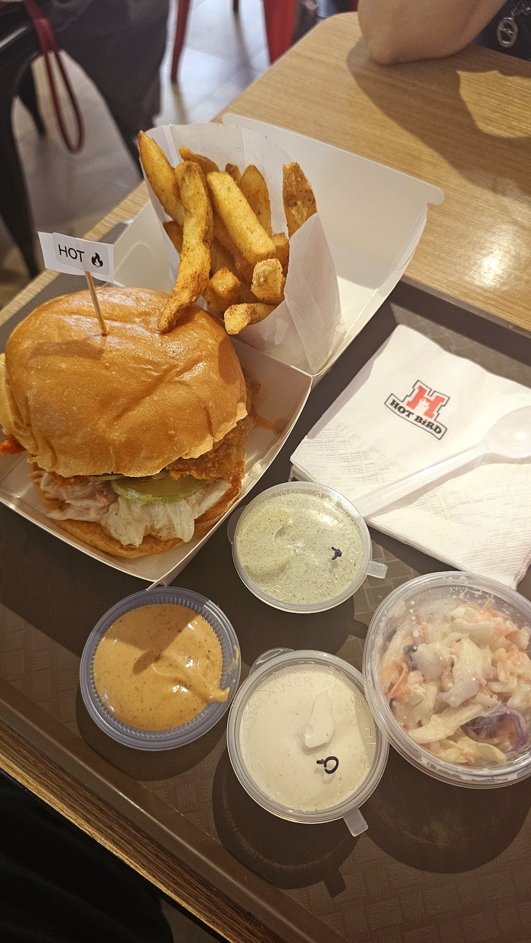 There were around 8 ppl queuing for their in dine option and there was no queue for their takeway line. I was served first at the counter by the cashier, and I had mentioned to him that it was my first time at Hotbird. Despite that he wasn't forthcoming with helpful suggestions if I'm being honest but he was professional so that was great.