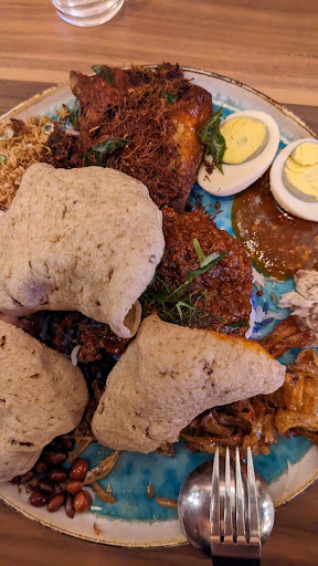 Read moreI thought I found the best curry noodle in town last year but this is better than the best. I was planning to order the nasi kerabu which was introduced by my friend but when I read the ingredients of the curry noodle, I immediately changed my plan. It was a 99% perfect curry mee for me. The only thing missing is wanton. That would be my dream come through curry noodle. Love the thick curry broth...not the creamy santan type. There were like never ending ingredients...slightly cooked cockles, long beans, brinjal (very soft and yet not mushy), taupok, fried beancurd, char siew, roast pork, pork rind, fish cakes and garnished with mint leaves. The combination was just the right portion. I detest those "supposed to be famous" overflowing bowls of curry noodles...too much tasteless toppings. Couldn't leave empty handed...ordered Nasi Kerabu for takeaway. It was almost perfect too if not for the overfried chicken thigh...a little bit dry. Very well packed ingredients. The blue rice from the blue pea flower smelled so good and lovely. The 2 type of sauces and thick sambal were interesting. Mixed everything up and it was a much healthier version of Malaysian bibimbap. The portion was enough for 2 pax. Choices of food and beverages were good. Found a kombucha that suit me for the first time...not too sweet or sour. Service was great. Love the decor too. Definitely a place that makes you...