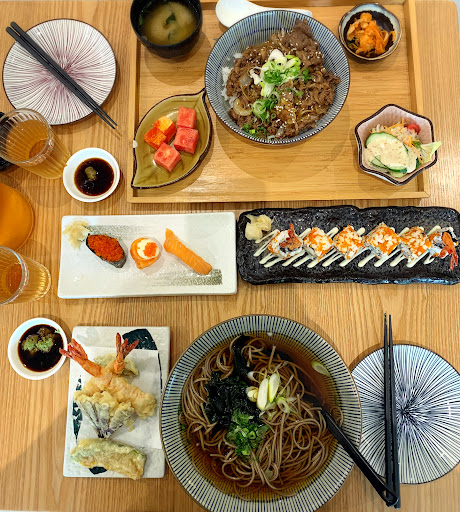 We ordered some à la carte sushi (priced per piece) such as Salmon Sushi (RM4.00), Tobikko Gunkan (RM5.00), and Tobbiko Hana Maki (RM5.00). The sizes were a bit small, but the quality was above average. We also tried the Ebiten Roll (RM23.00), which was quite good. For the main course, we had the Gyu Don-Australia (RM32.00) and Tempura Soba (RM32.00). Both were of standard portion sizes and quite good. For drinks, we only had Roasted Green Tea (RM3.00 each, refillable). Overall, we were quite pleased with the food quality here. However, the wasabi was bland and tasteless, so it would be good if they could improve this. Price-wise, it is slightly expensive but still acceptable.