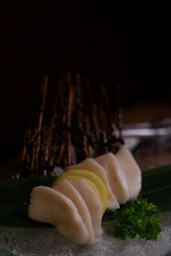 Based on some reviews, we ordered the recommended White Tuna Sashimi.. Which was ok 3.5 ๐... Just that it came with too little Wasabi. We also tried the seafood set 4 ๐ which came with tiger prawns ๐ฆ , scallops and squid ๐ฆ plus one oyster.