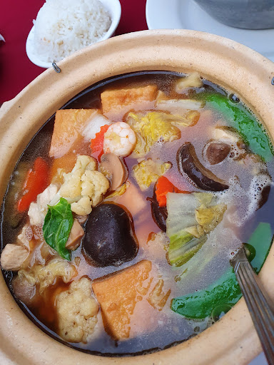 Most patrons are here for their revered, aromatic seafood of the spicy crab genre, such as the flavorsome and delicious chilli sauce-with-eggs variant that comes with the consistently right texture of sauce, spice, egg and taste that you'll love to savour! The black pepper and "kam-heong" 甘香 (with herbs, curry leaves, garlic and dried krills) variants are as aromatic as they are mouth-watering and almost always very well cooked for your enjoyment. For those who prefer non-spicy variety, do consider the steamed soy-sauced grouper (brown, red or tiger varieties), deep-fried Tilapia/grouper in sweet & sour sauce or with oily soy sauce (油㓎). Another specialty is the "salt-grilled tilapia" which is really for the esoteric. The fish variety is limited mostly to grouper, tilapia, red snapper (红枣鱼), patin, seabass ("siakap") & marble goby ("soon hock"). No live lobsters, exotic clams, "loongdan" (龙胆 giant grouper) nor Alaskan crab. The "Indonesian curry prawn" (印尼加里明虾) is as exotic as it's delicious, pan-fried black soysauce prawn (晒汁虾), the ever popular, succulent butter prawn (奶油虾) and salted-egg fried sotong (squid) are standard fare. The absolute must try is the mesmerizing "lala (clams) in superior soup"(上汤啦啦) served with a little Chinese rice wine that's remarkably well cooked.