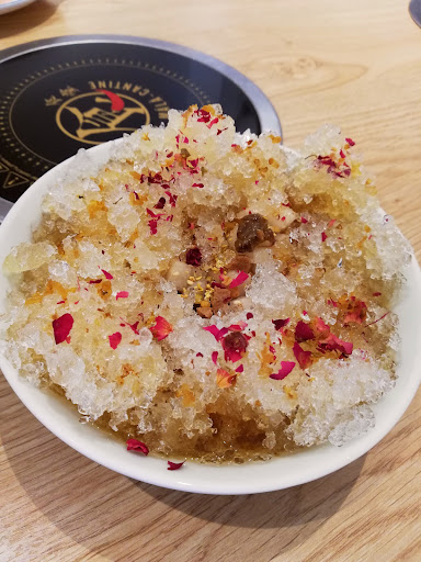 香橘桂花冰粉 Ice Jelly with Tangerine Syrup taste average but it's a perfect dessert for spicy hotpot. It's shaved ice with strong scent of osmanthus,not too sweet but good enough to relieve the spicy burning sensation from mala soup and comfort our stomach.