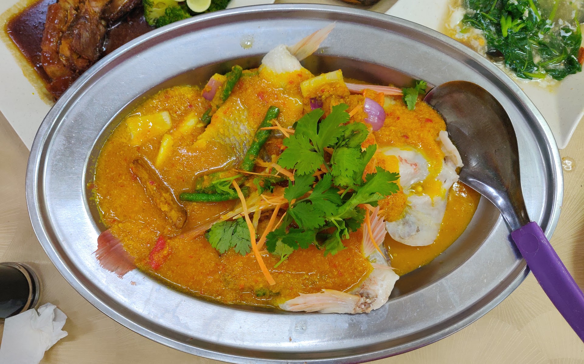 Read moreHad it 2 nights in a row over cny. Food was ok and the price very reasonable even during festive period. The stewed pork knuckle was good if yiu get one that's not gamey. The Kampung chicken is good. The yam basket with salted egg coated mantis prawn is superb. Remind them to make the basket crispy. We had the sweet and sour pork version and that was good too. Don't go for the red snapper but instead the nyonya tilapia. It's very2 good. The crab was not too happening but the sweet spicy sauce is very good with the mantau. The lala bee hoon is good. Pls remind them to ensure the food is hot. Service was ok except if you sit upstairs the waitors have to run up and down. They don't have a dumb wait or. All in a very pleasant boss Yvonne. For 8 of us and about 8 dishes and tea it's a tad over rm600. Not bad. Parking is plentiful during evening but not so during...