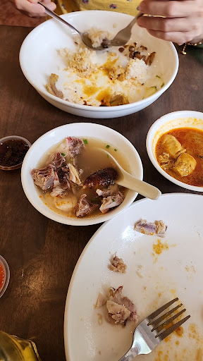 3/ Taste of food was mediocre at best. The curry noodle was served with either clam/cockle (sorry, can't really confirm as they tasted really weird, didn't look fresh, could be from frozen). The steam chicken was bland. Kopi was so so.