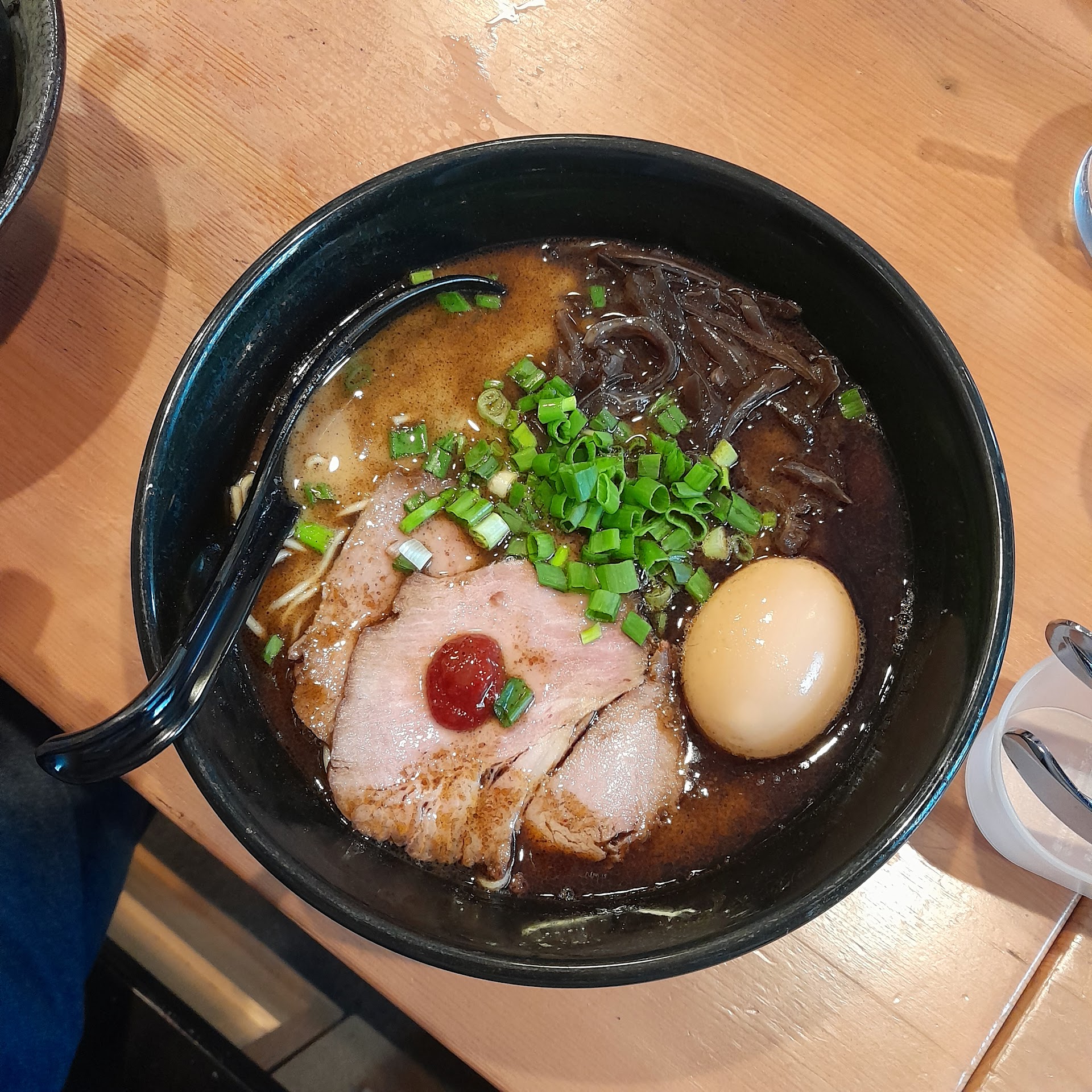 Read moreAbout Menya Shi Shi Do: Mainly sells ramen in Tonkotsu broth (pork bone soup). There's green onion, black fungus, Japanese soft boiled egg and Char Siew (Roasted Pork slice) in the ramen. It has different soup flavours such as soy sauce, basil, curry and etc. You can also combine up to 3 flavours in a bowl of ramen. Not to forget it has some special ramen such as Aka Oni (extra spicy ramen), iipon Yaki Buta Tsukemen (big slab of roasted pork) ramen.