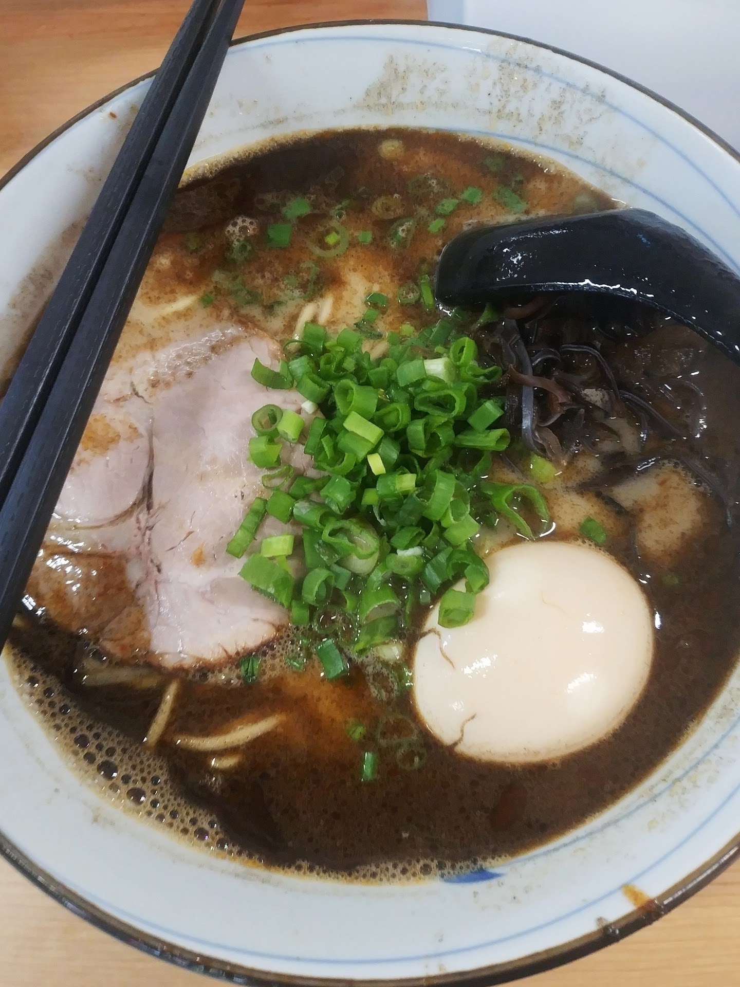 About the dish: The soup is smooth and mildly rich with sweet flavour of pork bone, slightly smooth texture of collagen. Noodle is chewy and absorbed the taste of the soup enough to be flavourful. Japanese soft boiled egg has runny york which is good but the outer egg doesn't have enough flavour, as if the egg is not marinate long enough by looking at the colour. Black fungus are crunchy and flavourful itself and with the soup. Char Siew is thin and rich in flavour, the saltiness makes it stands out from the soup in a good way. The fat level of Char Siew is low but still very easy to chew.