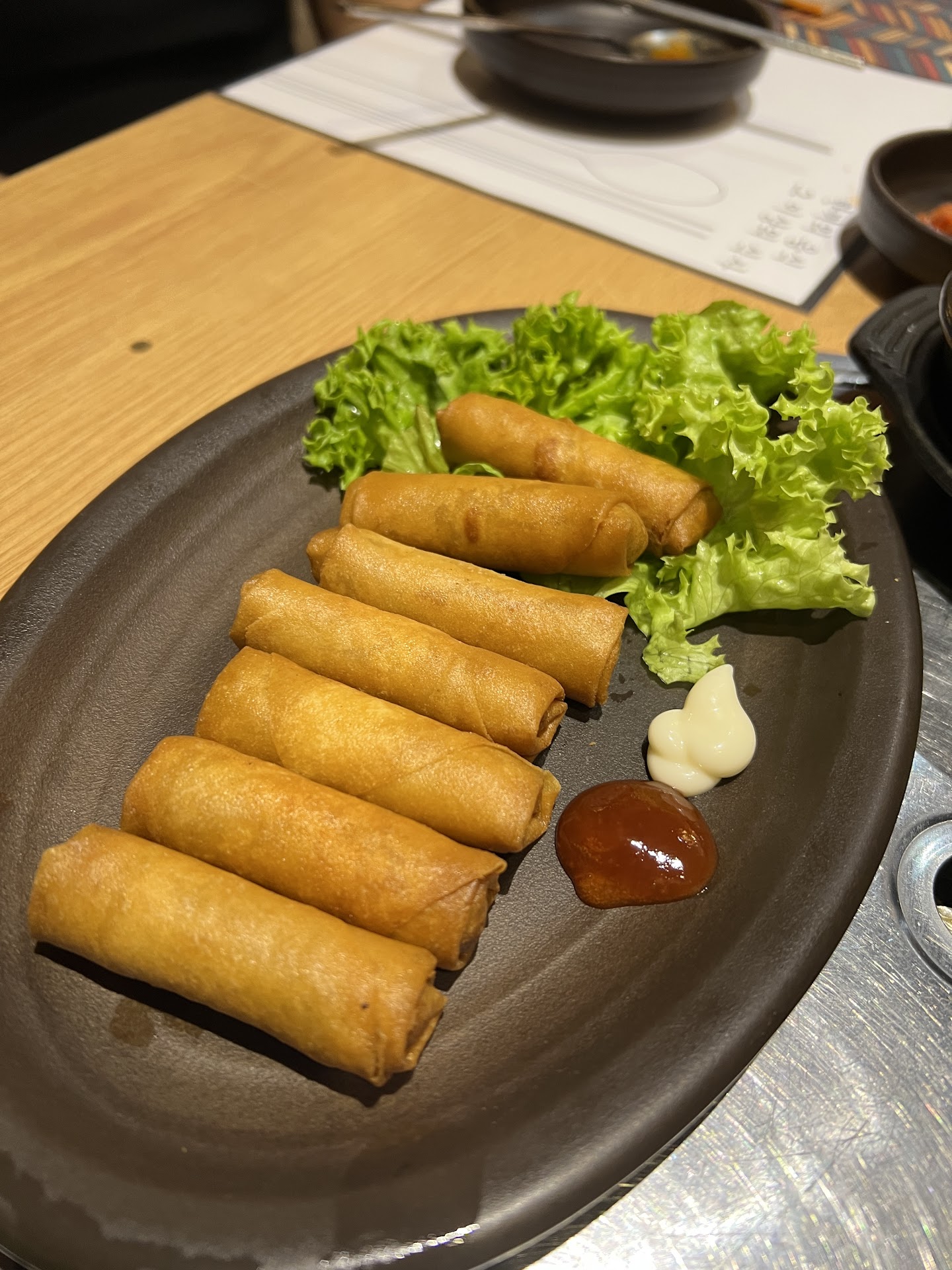 From the photo of the side dish. These is the amount serve for four people. Menu say free vegetable refill and we are only give 6 salad leaves. Can you wash the salad nicely also? Ask for more as we have four person here but the explanation from the staff say “if come 10 people also serve the same amount” Since is side dish then don’t argue so much. But come on, kimchi side dish is from one tiny cut. How much are you gonna lose here from a side dish of kimchi? You have the budget to hire a robot named “PUDU” but don’t want to give more kimchi?