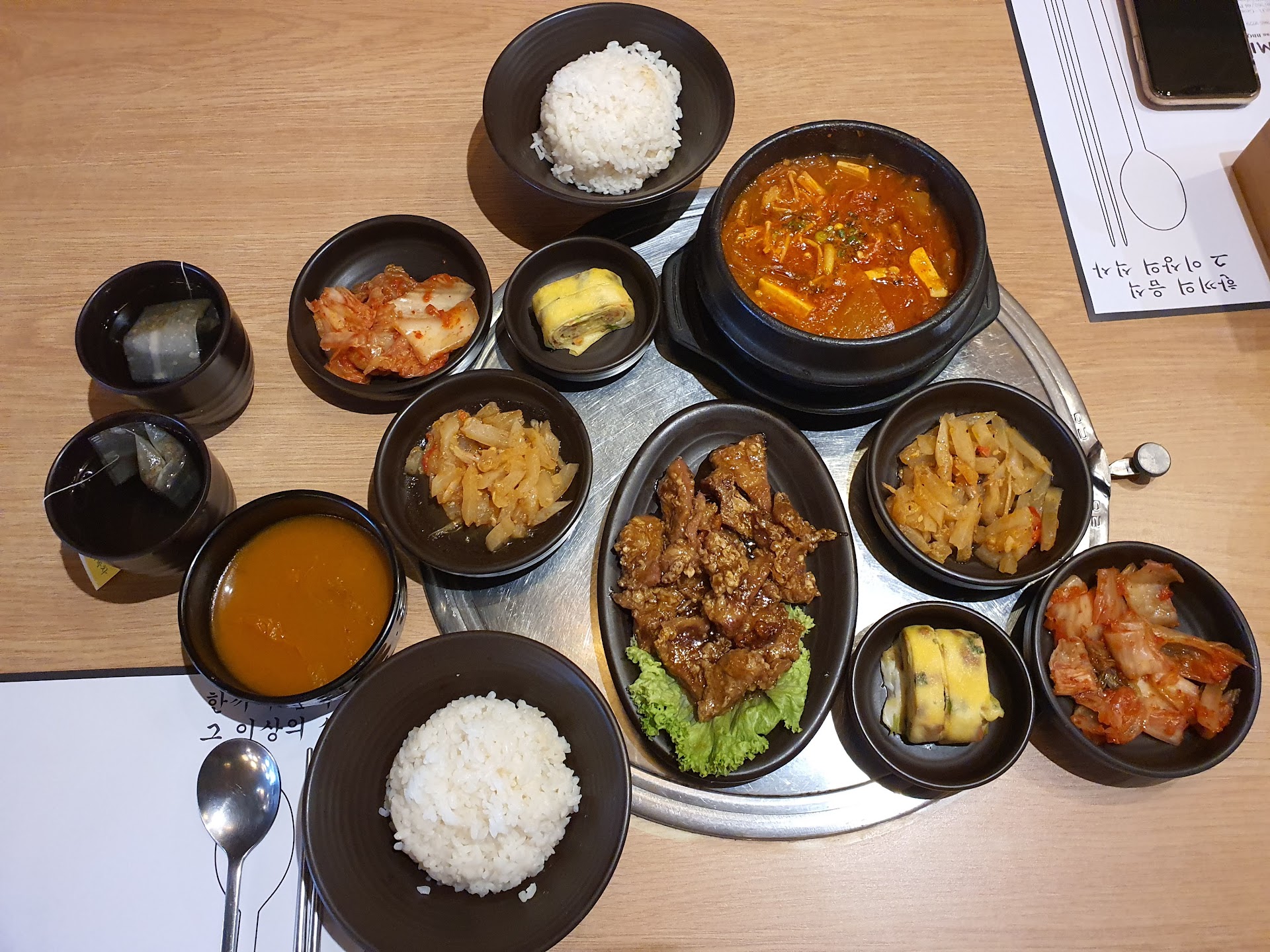 Read moreWe went there for lunch due to the lunch promo. The food as shown in the photo are Pork Collar Sweet Sauce Set and Kimchi Soup Rice. We ordered 2 hot green tea too, total price is RM43.80. The food are tasty and environment is cozy during lunch time. They got this cute food delivery machine to minimise contact for the dishes to be delivered to our table. They got membership registration via contact number and voucher redemption for the next visit too. One little thing I would want to mention... We (2 persons) chose the side table which fits 4 persons. 1 of the staff invited us to the other "big table". They said it's for 5 to 6 persons but we saw it only fits 4. Right beside the "big table" there are already 2 customers there. So due to social distance, the staff took away the "Reserved" plate from another "big table" on the left and asked us to be seated. Ya they put "Reserved" plate on the so called "big table", but upon leaving there are no customers sitting around also. Then... After we are seated, another staff came to tell us it's reserved so by right we cannot sit there. Err... What the hell ? Can you guys communicate among each other ? Lol... In the end, she let us to continue sitting as we were. But the feeling is a little disturbed...