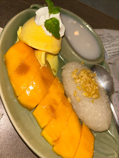 As for the dessert, the mango sticky rice coconut cream on the side is quite sourish and salty⦠usually it should be sweeter n thicker. The red ruby was really nice though! However, we told them that we want the dessert after meal but it was served together⦠they help us keep it in the freezer while we are on our main course, when the dessert came back. The red ruby melted