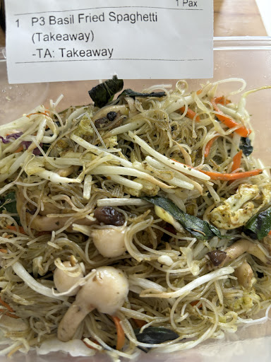 I ordered one fried rice to dine in and Basil Fried Spaghetti to go. Not sure if the cafeâs spaghetti is something different, the Basil Fried Spaghetti is actually a Basil Fried Beehon and they charged me Spaghettiâs price.