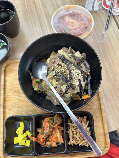 And check out the photos. The sides - you might as well no need to give right...some cubes of the yellow radish and two slivers of kimchi. Look at the colour of the ramen - needless to say, there was no spice, no flavour, and it tasted meh. Beef was surprisingly OK but that was it.