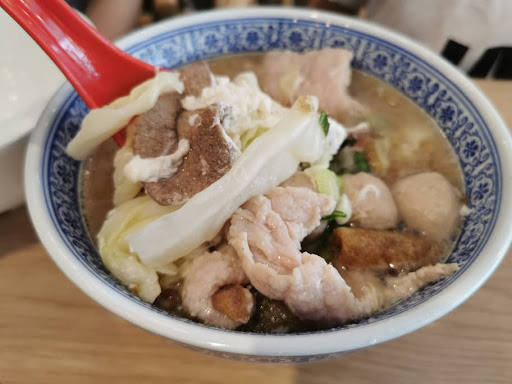 Read moreEnjoyed this pork noodle a few times! We typically ordered one big dry one and big soup one! Since my husband doesn't eat pork organs, he asks just extra pork meats but on our last visit, we were told it's not possible. So it means even though the organs are not served, the lean pork isn't added up unlike last time. I saw disappointment on his face immediately since we actually love their deep porky flavoured soup at most. Anyway it's what it is. There are various add-on items available like bittergourd, tofu skin, fried fish cakes, cucumber, seaweeds etc. We tried the bitter gourd which is crunchy and just good. The noodle is springy and freshly made so delicious right away. Though we ordered a big size both dry and soup , we were really able to finish it all and become tummy full.👍🇲🇾😋🍜 One downside is their drink system, which cost you rm4.5 flat, for unlimited times from coffee to ice tea, water, basically all kinds of sugary drinks you can think of, that also means water is not free either or not even like rm 0.5 ~rm 1.0, which is availanle for ordering cold water(ice kosong) at most kopitiam. Since water isn't available separately at an reasoable price, it's quite hard to go often. But for sure when we have a craving for pork noodle , we...