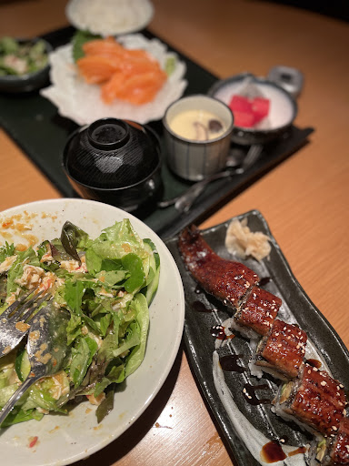 Last week I had another dinner with my partner and we ordered Teishoku (dinner set) which is the salmon sashimi zen, tomago (egg rolls), sashimi salad, stamina roll (grill eel & avacado) & asari miso shiru (miso soup with clams). My personal favourite is their stamina roll because the eel taste so good and I always order the same every time we come here.