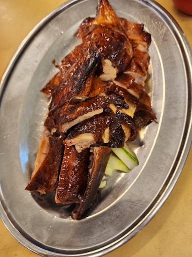 If you are there only for the roasted duck, it's really not worth the hassle. The roasted duck is fantastic, but the restaurant owner is probably the rudest waitress i have ever known. Mind you, the roasted duck is a stall in the restaurant which are owned separately. We waited 15 mins to order (this is before they knew we only wanted the roasted duck) when most of the table are already served and eating so idk what's the wait for. Fine. After finally getting her attention, we said we only wanted 1 side dish, 3 rice and 5 water to accompany the duck, she loudly and rudely "you only want a dish?" didn't wait for us to say anything, turn around and promptly "forgotten" to turn in our order. We know this because after waiting for half an hour for a dish, it didn't turned up and we already finished the roasted duck. We asked for it and then they confessed, so we decided to cancel the order as we are already full. When we asked for the bill, she literally shouted in front of the restaurant "what's there to count? They didn't even order anything". I was super tempted to leave, but we are not uncivilised like that so we just reminded her the rice and water still need to be paid. In which she charged us RM13 for it. After enquiring how the sum is derived, the price dropped to RM11. I'll let you do the math here cuz all I know is that they overcharged because they are bunch of arrogant bigots. If you want good roasted duck, i highly recommend Village Roast Duck, they do charge a little higher but the service is much better. Don't bother with other chinese restaurants in that area either, they are all arrogant shites (trust me I've tried them all).