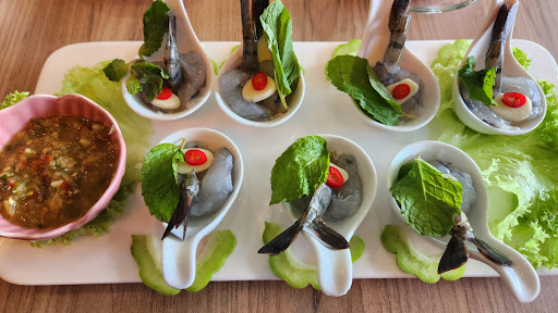 While the food tastes good, it doesn't quite capture the authentic flavors of Thai cuisine. The Tilapia Fried Fish was too dry and overly sweet, and the Tom Yum Soup, although nicely balanced in sourness and spiciness, lacked fragrance. The Pandan Chicken was disappointing, and the Cha Om Omelette tasted like plain egg, missing the strong flavors typical of Cha Om. On a positive note, the pork leg was tender and flavorful.