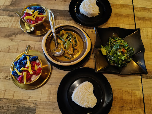THIS RESTAURANT IS SO UNDERRATED! Second time to dine-in here (2 pax). Once for lunch and this time for early dinner. The staffs here are super friendly and helpful. Saw a group of family came in with a kid and one of the staffs brought a baby chair without the guest asking for it. The ambience here is great. They'll play Thai songs (I think) and it smelled of lemongrass in here. The AC makes it quite cold. Both of the time I came there wasn't many people. It wasn't packed full. Maybe it was our luck that when we came there was nobody else except for a group of family that's already eating. So we ordered our food and it came at around 15-20 minutes. It was pretty fast and all the food came out all at once, still hot. We had their green curry chicken which contained some terung pipit, normal aubergine, chicken strips (boneless) and long beans. The first time we had their red ruby I remembered it doesnt have the 'blue' red ruby but this time maybe they improvised the appearance. The portion is big and there's a lot of rubies in there I had their pad thai before and it was delicious. The noodles are perfectly chewy, not overcooked. The shrimps are fresh. It's just a bit on the sweet side but maybe that's how the authentic one taste like? Idk. But sedap. Nothing to complain at all. Definitely will come again whenever I crave for Thai food.