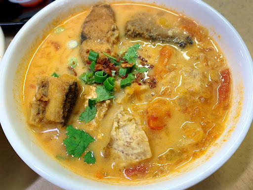 Read moreBeen hearing about their fish head noodle and highly recommended by a friend. However when I went to try …to my disappointed, the portion was small more like a snack and as you can see frm the pic they gave only bones and barely any fish flesh whereas looking across other tables I saw many having the same thing but in contrast flesh more than bones. Guess I was just the “unlucky” one. Lolxz..The soup was very good and can taste the blend of tomato into the broth. Had the fish cake also and it’s very generic tasting and nothing special to shout about so don’t even bother trying it if you’re tempted. Btw cash only terms restaurant at this day and age is kinda inconvenient so be ready with cash or you’ll need to bank into their bank acct. In conclusion love the soup not the portions and serving. Will come back another time to give it one...