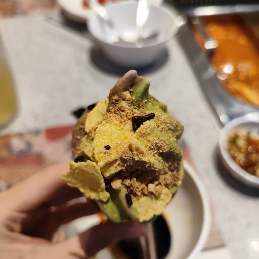 The following is included in the price and can unlimited refill: Four types of meat provided, including pork, lamb, chicken and beef (served) (( &prawns Fried chicken wings (served) (taste quite good hehe Two flavours of ice cream provided, including matcha and chocolate. (Not too sweet, love it) And also some toppings include crunched peanuts, chocolate chips, white jelly and cornflakes (Self serve) Two types of beverage provided, including green tea and orange juice (Self serve) Many types of sauces (((but all the sauce specified mala or spicy really not hot at all...(Self serve) Many types of veggies, sushi, blabla (Self serve)