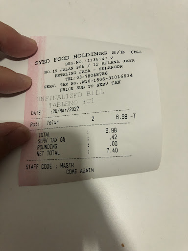 Read moreMembers of public should stop going to these shop then probably the owners might realise their mistake!, but the problem our public does not practice their consumer rights , they don't even care or bothered at all so tour get restaurant owners don't bother about prices and quality food and services at all . I dont go at all unless I have no choice as people still want to patronise there which at times I have no choice to go also . If can stop going to syed bistro ., the owner will never change , and improve the quality food , services and prices as far as I am concerned, so consumer should exercise thier rights by not going or patronising in thier premises...