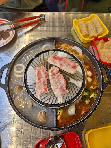 Mookata Perfection: The core of the experience is, of course, the mookata setup. The grill in the middle allows you to sear meats to perfection, while the surrounding moat simmers with a flavorful broth, perfect for cooking all the fresh seafood and other buffet items. We particularly enjoyed grilling the thin slices of beef and pork. The versatility of being able to grill and boil simultaneously is what makes mookata so enjoyable.