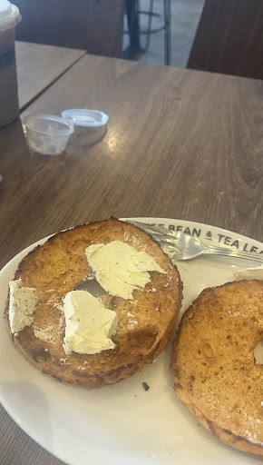 Despite saying I am dining in, I waited at my table for 15 minutes and got up to check. I then asked the waitress to help clean my table as there were crumbs and no one had cleaned it for 15 minutes. She didn’t look happy, and she wiped my table once, before asking what I ordered as she noticed I hadn’t got my food yet. I repeated my order and she immediately brought it from the counter, sitting in takeaway carriers and the bagel in a paper bag. I was hoping she would get my message as I was sitting at the table, and she didn’t look pleased when I repeated that I am dining in. She took my bagel and the cream cheese package container and put it in a small plate which can’t even fit both sides of the bagel open faced (for me to apply the cream cheese inside, since they did not apply it for me as it should have been applied for dining in bagels). Again, she was not pleased when I asked for this and also asked for the bagel to be reheated as it was cold from sitting in the takeaway pouch on the counter. In the end, I finally got my hot bagel on the plate, and could finally apply the cream cheese myself (since they didn’t offer to apply it for dine in) to eat it.
