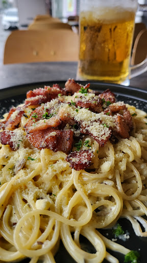 Read moreOrdered the hainanese chicken chop, smoked duck pizza and spaghetti mamak. Good presentation of food. Taste wise, the chicken chop was tasteless on its own and not really hainanese style. Spaghetti mamak was quite watery. Should taste better if fried dry. Pizza was savoury and sweet. More like a dessert pizza. Live singing on certain days. Outdoor seating has many smokers although it is illegal to smoke at restaurant premises. Need to pay to park inside...