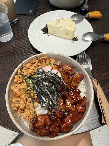 Read moreFood here is alright, not the best. My partner ordered the chicken don, it was way too watery - also as if he’s eating soup with rice. I had the Japanese carbonara spaghetti, it was soso. The taste wasn’t really there and the fried tempura was slightly too soggy to my liking. I do however, really like their cake selections! There was about 8 cakes available and I was tempted to try the strawberry, mango and earl grey yuzu flavored ones (I’ll surely consider coming by to pick up some cakes in the future!)