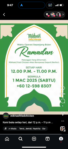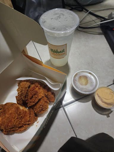 As I looked around, I saw a shop right in front of me called Mikhael Fried Chicken. I had never heard of it before, but I decided to give it a try since I was too hungry to wait or search for something else. I went down and bought a meal to fill my hungry stomach.