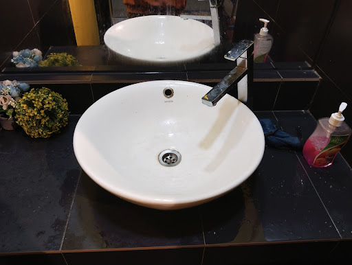 The sink was really wet and grimy , the same goes for the floor in front of it and some of the tables were full of used plates and cups. (to be fair, it's a self-serve restaurant but come on! you can't even wipe the tables down sometimes?)