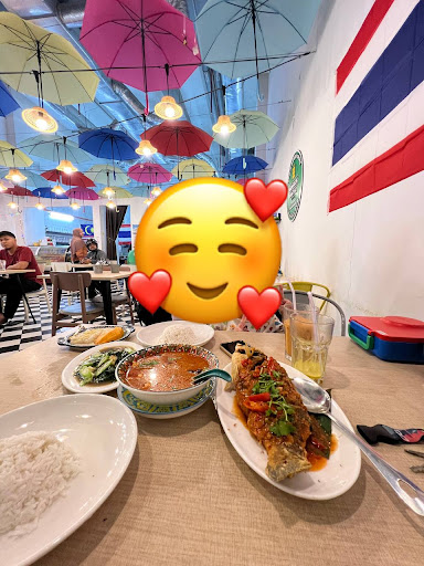 Solid Thai restaurant, but quite expensive for the small portions. We ordered the nasi seafood tom yum with omelet upgrade, chicken pad ka prow, somtam, beef baby soup, kangkung garlic, ulam & sambal belacan and pulut mangga. Very tasty tom yam, but very tiny portion and lacking veggies. Good accompanied with tasty omelet and rice. Unfortunately ulam & sambal belacan very disappointing. They gave steamed broccoli and carrot instead of expected ulam kampung. Sambal was not spicy enough, quite runny and overpowered by belacan. Somtam had quite good flavor but chili not evenly distributed and missing supporting ingredients like kacang panjang and tomato. The chicken pad ka praw made spicy on request was very tasty & more-ish. Kangkung was fresh and tasty, if not slightly too much msg. Pulut mangga very tasty, highly recommended. Drinks expensive and biasa2 je, as usual kurang manis still very manis. Service quite fast & friendly, as we arrived before peak lunch hour. The ambience is nice because of the lake view, but less nice because of the ghost town feel of menara PJH. However the throng of govt employees coming for lunch makes the place more lively. Looking forward to returning and trying...