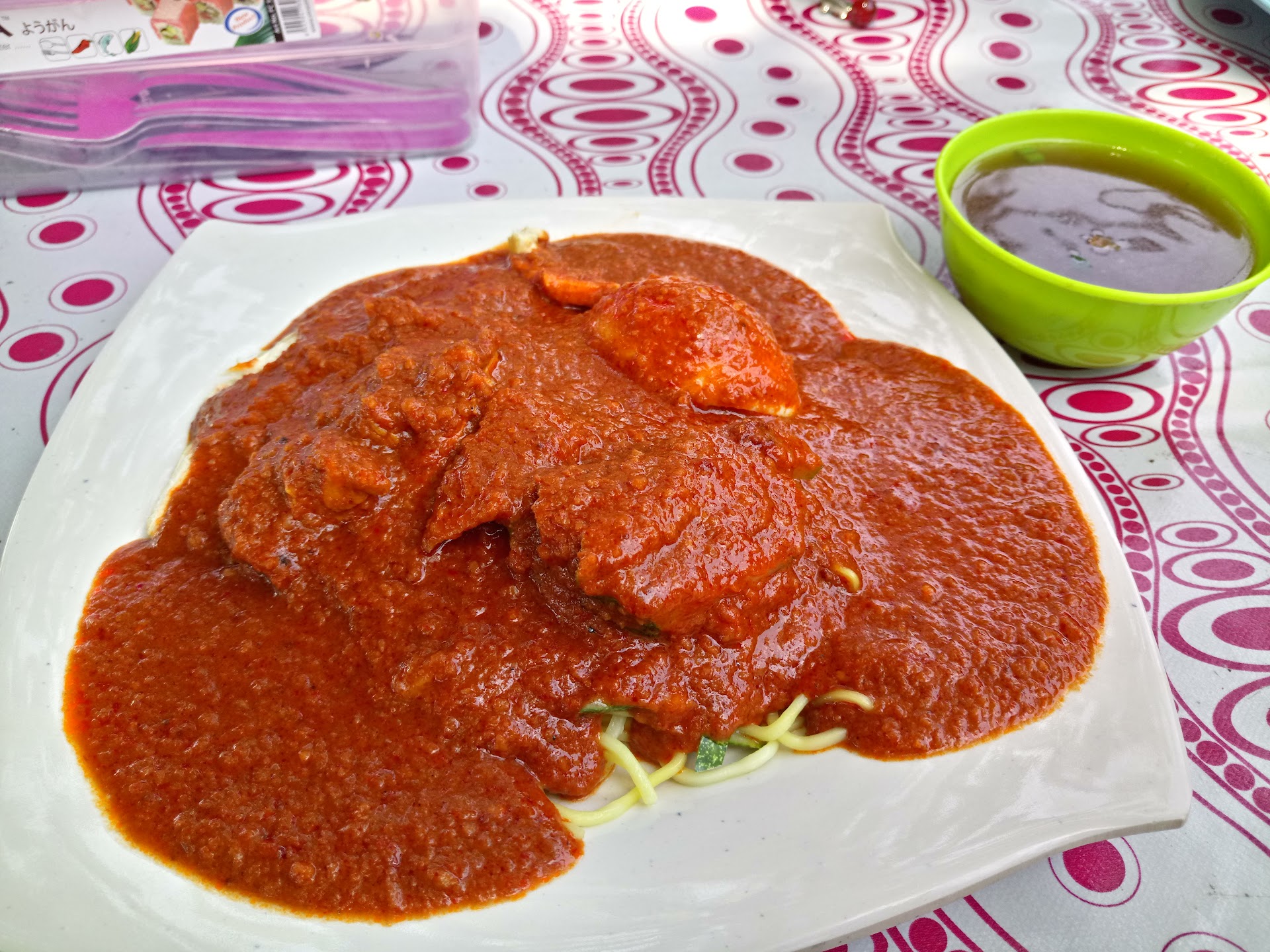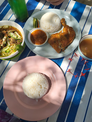 Cafe by the beach. It's a holiday just to sit under a tree on a sandy beach, eating lunch. The sign for the cafe is easy to miss. Parking is a bit of a tight squeeze. Food is malay. Nasi Nyiru (Ayam penyet) is Just RM9. Large piece of chicken with crunchy batter. Slightly disappointed that the sambal was not homemade and the nasi was a bit dry but the ambience more than made up for it. Service was prompt. There are tables under trees and in a ricketty shed. Lovely for lunch. Not tried it for dinner. BE WARNED. This venue is VERY rustic. The loos are not...