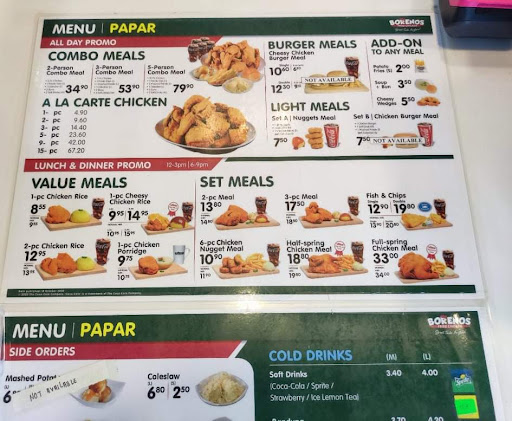Read moreI went to Borenos with my family on a rainy day. We ordered the combo meals and also a bowl of porridge for my sister. The porridge taste good and the price is very reasonable. The chicken is served fresh and hot. The mash potato is also very nice. My mom loves it. The coleslaw is very good. The fries is crispy and hot as well. Feels like they prepare everything fresh from the moment I place my order. I love the environment of the restaurant. Has a nice vibe to it with the cool music and also the warm and friendly staffs. Will definitely visit again to try out their signature spring...