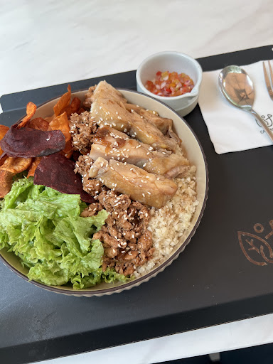 Read moreFirst time eating inside after ordering online for more than 20 times. The experience was soooo much better, they give you soup and the main dish bowl was so big compared to what you get by ordering online! And so much variety in the build your own bowl. If you dont like eating ducks, you’ll love the smoked duck here, trust me! Complete nutrition. Want prebiotics? Get yoghurt, and kimchi. Healthy fats? Get avocado, guacamole and almond butter. Want carb-free? Swap brown rice with greens. Also, the muslim woman staff who gave me the receipt was really welcoming and friendly🙏🏻 Just that im sitting near the kitchen, ada some flies on my table.