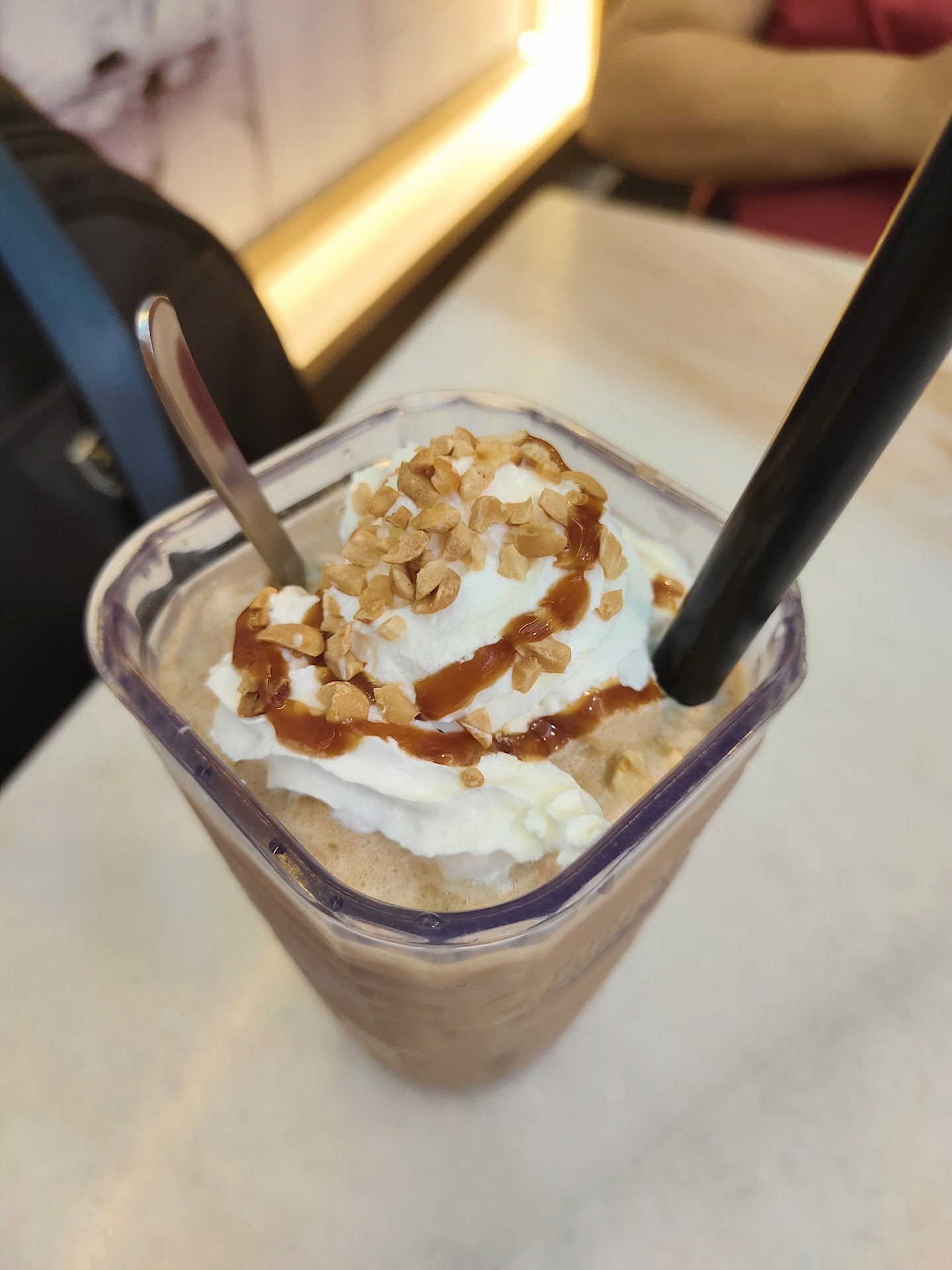 I ordered the Chocolate Freezy, which was cold, creamy, and topped with chocolate chips — sweet and refreshing, perfect for a hot Sabah morning. The peanut butter toast was simple but satisfying — nicely toasted, not too dry, and the peanut butter was rich without being overwhelming.