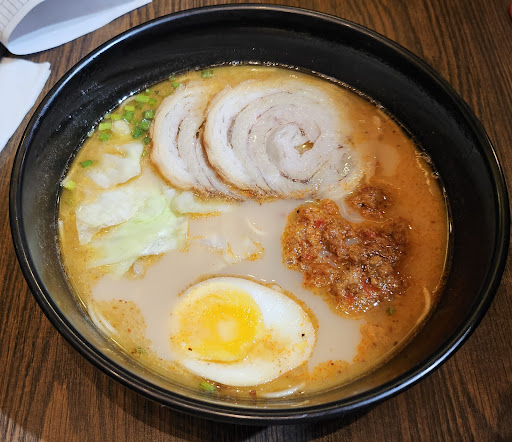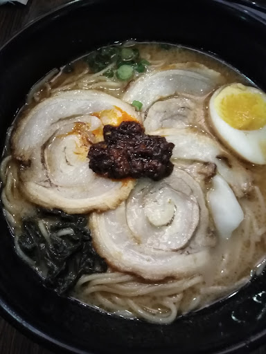 Awful experience. Waitresses and the cashier were not friendly: no proper customer service (welcoming interaction, taking orders, cashier service) and were on the phone all the time. Paid service charge for not even a hello nor welcome. Prices for the ramens were actually reasonable but we were served below average ramens. Paid 28 bucks just to get only 3 thin slices of pork shabu, 2 small slices of cabbages, half slice of a boiled egg, noodles and broth for my Pork Shabu Ramen. Broth was great but what's wrong with the toppings/ingredients? No corns, no seaweed flakes, no sesame seeds at all? Cha Su Ramen was also bland with same no topping case. Only two thin and short slices of enoki mushrooms were served for my Golden Mushroom. Drinks were mediocre. Overall, not worth it. Anyone looking for a good ramen, I recommend Food Parade for non halal and Himawari...