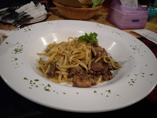 I ordered Chicken Mushroom Aglio Olio Pasta. The taste was nice just a bit oily for me. 😁 the pasta serve in big plate with some simple embellishment around it. Nice👍