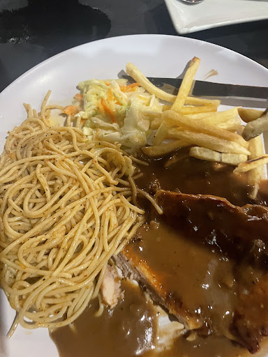 Read moreI ordered the lamb chop + rice ones. The food is light on seasoning & is up to my taste buds. However the rice is too mushy to my liking, the coleslaw is also cut way too big that the cabbage left a bitter aftertaste, the fries is also lightly seasoned (actually I don't really taste the salt but I like it). I love their iced lemon tea tho, but I believe they should give a bigger portion for the drinks or just use the same cup for every drink (for example, their cup for iced lemon tea is small, yet the ones for orange sprite is big). The atmosphere is 3/5, pretty similar to every other restaurants, however I do love the songs that the staff plays, they're very calming. You can order by scanning a qr code (not so user friendly esp if the customer is from older generations who knows little to no knowledge regarding technology).