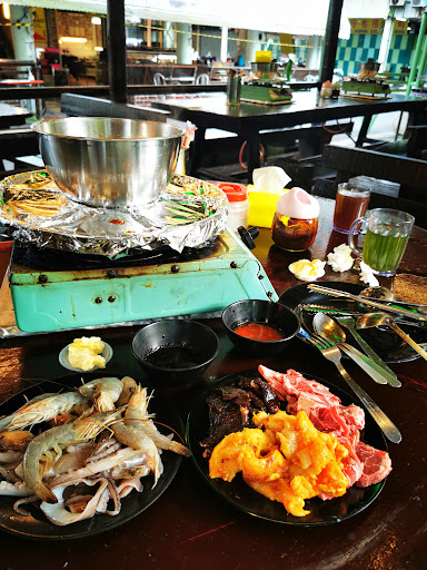 Our first time here, recommended by a fellow. Service is alright, very friendly owner. Nice atmosphere, big open air. Food selection is widely varied: they have cooked food, abc ais kacang, ice creams (only two flavours though), seafood, chicken and beef, veggies and soups.The price is also cheap. Minus a star is because the food, especially seafood are not fresh and cleaned thoroughly. We had a hard and disappointing time finishing crabs that we took. We didnt take mushroom especially enoki because it looks very dry and almost rotten at the food bank. We hope they can improve on the freshness food. Its health concerning eating something almost rotten, right? Nasib dapat tengok visually, kalau yang kena salut sauce macam mana nak tau fresh ke tidak? Tak pasal2 kena food poisoning. Remember, cheap price does not...