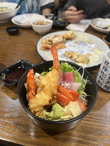 The don is beautifully presented, featuring an impressive selection of fresh sashimi including tuna, salmon, and more, topped with a fresh sea prawn tempura that adds the perfect crunchy contrast to the soft, delicate fish. Every ingredient felt premium, from the buttery sashimi slices to the creamy avocado and crunchy vegetables layered over seasoned rice. The wasabi on the side provided just the right kick without overpowering the natural sweetness of the seafood.