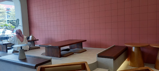 The cafe's interior design is pretty with an emphasis on warm sunset shades like coral, beige and pink. I liked that there was a unique seating area where customers can take off their shoes and sit on cushions. The atmosphere felt trendy and bright as they had lots of Korean songs playing. Staff were polite and attentive, cleaning the tables quickly after customers leave.