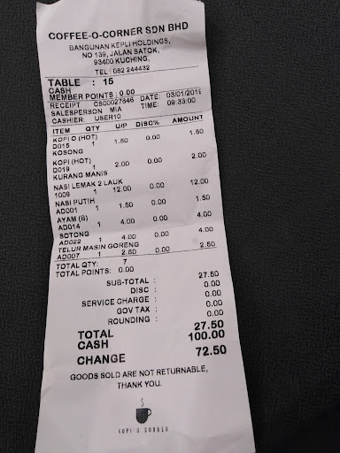 Kopi O Corner is almost a benchmark for every restaurant in Kuching. It is actually cafeteria style with a sprinkle of kopitiam feels. A varieties of local cuisine such as Mi Jawa, Mi Kolok, mi/mihun Soup, Nasi lemak with extra side dishes plus mixture of indonesian Bakso, Buraksak, & Ayam penyet and also Varieties of chennai pratha as roti kosong, roti telur and lastly choices of mouth watering desserts such as cakes, yoghurts & puddings. Service with a smile is one of their motto. You will not feel neglected when you come here due to the attentiveness of their staff. Have any complaints, just tell them & they will try to fix them immediately. The environment is chill and relax. During the day some of the peak hours, you'll definitely have to wait for a clear table because it is Packed! During night time, ohhhh it's so chill that you don't want to leave the table. Night comes, the buskers emerged to entertain customers while they are having their dinner & supper. All of the foods here are tasty and could satisfy your palate (possibly) with a great environment to top it up. Do come. Oh btw, they've won a few awards and even featured in tv's for their famous...